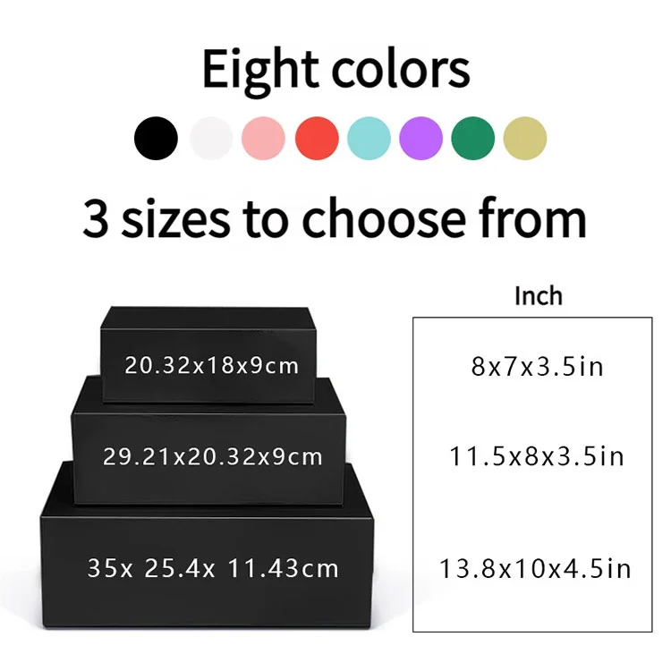 | Structural Advantages | Pantone-matched solid colors Premium rigid grey board Laminated glossy or matte specialty paper Optional EVA foam insert or cardboard insert Customizable surface finish Hot foil stamping (gold, silver, rose gold, etc.) Embossing / debossing |